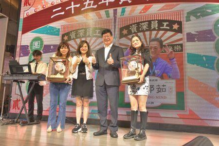 ปีนี้มีพนักงานมากถึง 14 คนได้รับรางวัลพนักงานอาวุโส (10 ปี 20 ปี 25 ปี) พร้อมถ้วยรางวัลและโบนัสเพื่อเป็นกำลังใจ! ผมขอย้ำอีกครั้งว่า ไม่ว่าจะเป็นนโยบายธุรกิจ หรือความทุ่มเทและความพยายามของพนักงาน การตัดสินใจและการปฏิบัติหน้าที่ของพนักงานทุกคนล้วนควรค่าแก่การใส่ใจ