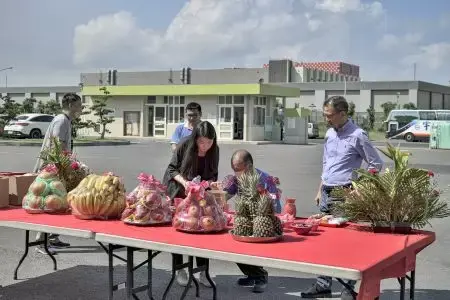 วันนี้ HTG ได้จัดพิธีขอบคุณโลกอันทรงเกียรติเพื่อแสดงความเคารพและขอบคุณสำหรับความสำเร็จของโครงการก่อสร้างโรงงานเซียนซี เฟส 2 และโรงงานลุนเว่ย คุณริตเตอร์ ไช่ ประธาน พร้อมด้วยทีมผู้บริหารและแขกผู้มีเกียรติ ได้มาร่วมเป็นสักขีพยานในโอกาสสำคัญนี้